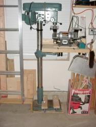 WARNING: A drill press is a very top heavy item. This approach to wheeling it