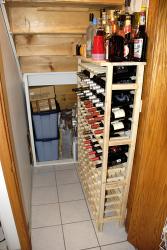 A no-frills basic wine storage unit. Since it hides under a basement